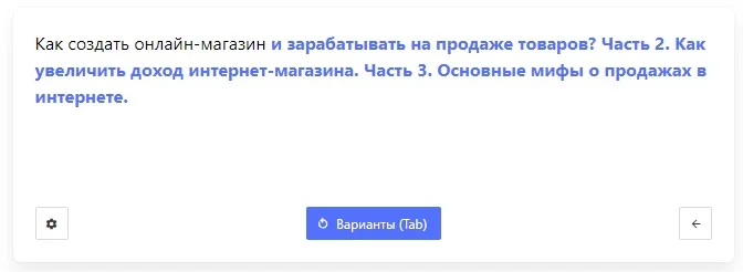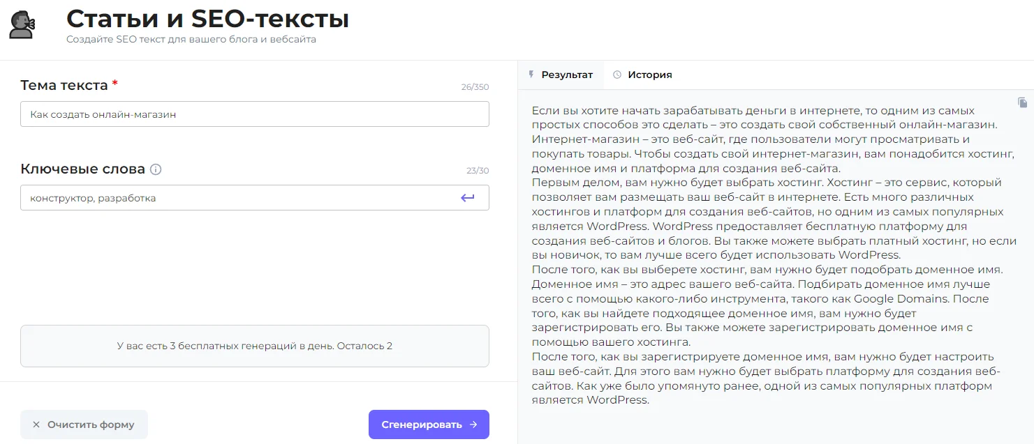 | Нет тонких настроек. Например, не всегда можно задать нужный объем текста или ключевые слова |