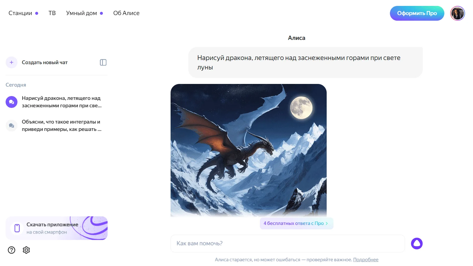 Яндекс предлагает оформить подписку на более продвинутую версию Алисы — Алису Про. Стоимость — 100 ₽ в месяц. Из отличий: на рекламной странице указаны только бессрочное хранение истории диалогов, более точные ответы и функция родительского контроля.