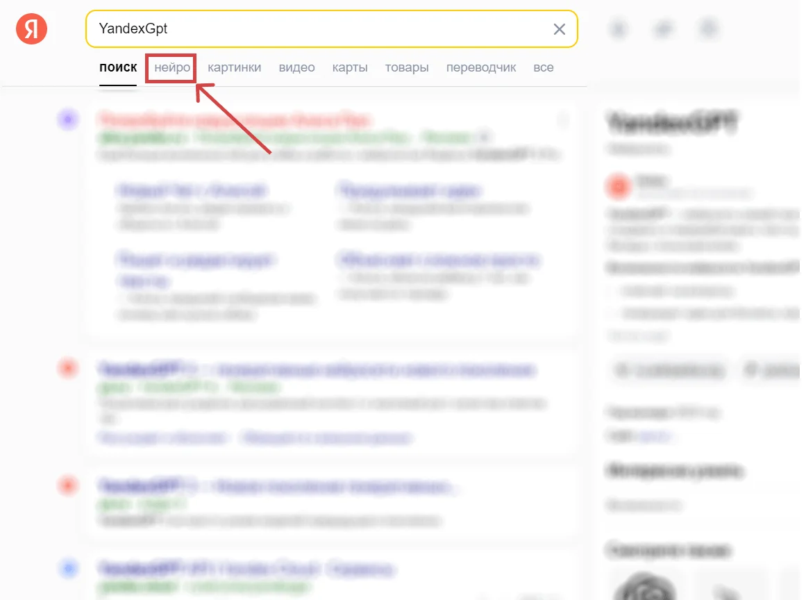 Нейро уже встроен в поисковик Яндекса. Чтобы отправить запрос Нейро, выберите вкладку с ним под строкой поиска.
