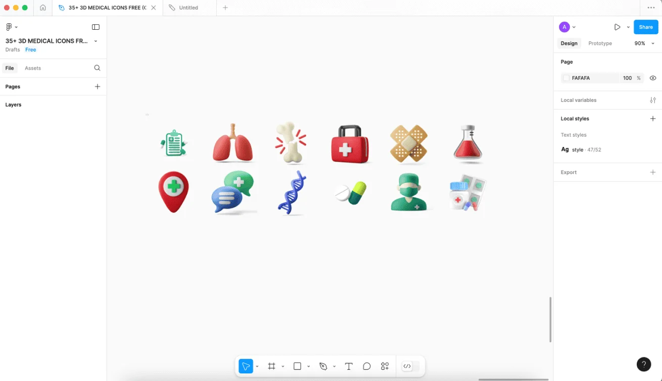 Если вы ищете какие-то материалы от дизайнеров — иллюстрации, иконки и готовые макеты, все они будут в формате файла Figma — можно мгновенно открыть и работать с ними дальше. Вот, например, мы нашли иконки на медицинскую тематику — их можно скачать или перенести в свой рабочий файл.