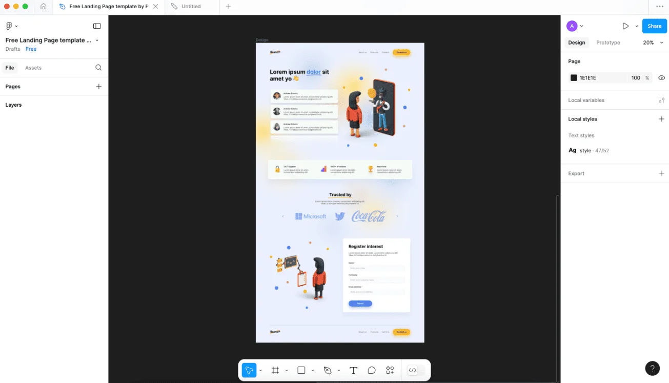 А вот макет лендинга из Community. Можно выбрать тот, что подходит к вашему фирменному стилю, поменять тексты и логотип — и использовать.