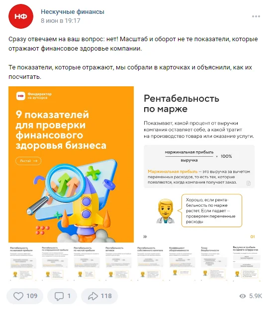 Пример переупаковки «Нескучных финансов». Это карточки сообщества ВКонтакте по мотивам аналогичной статьи