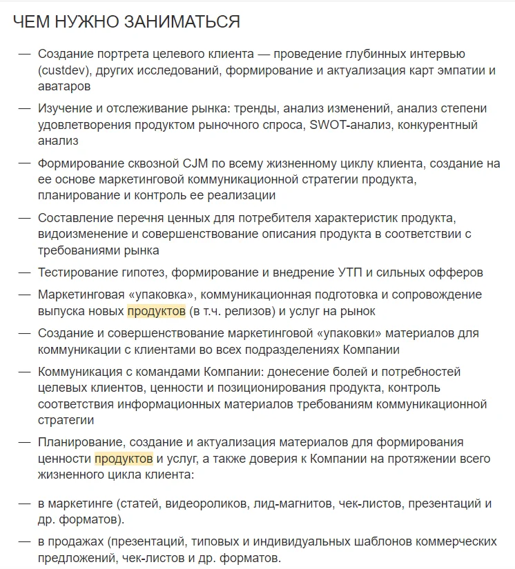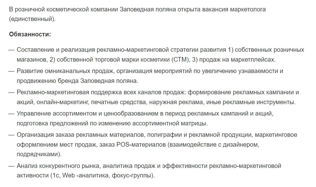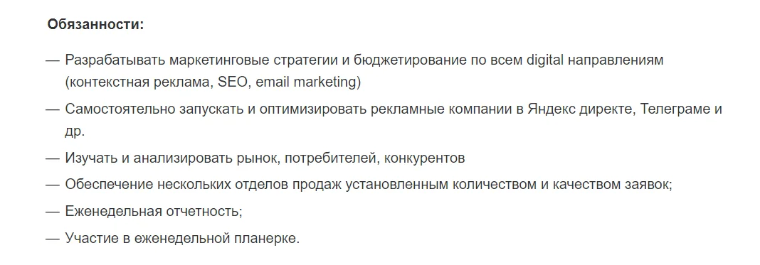 Вот пример — ищут человека, который будет отвечать за маркетинговые активности в digital: