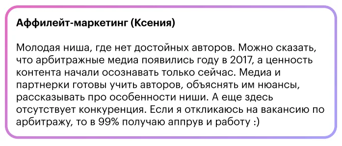 Клиент может запретить писать для конкурентов. Чаще всего такое происходит в банках или IT-компаниях со сложными продуктами, такой запрет прописывают в договоре. Чтобы специалист не искал подработок, одно место работы должно обеспечивать и хороший доход, и интересные разнообразные задачи.