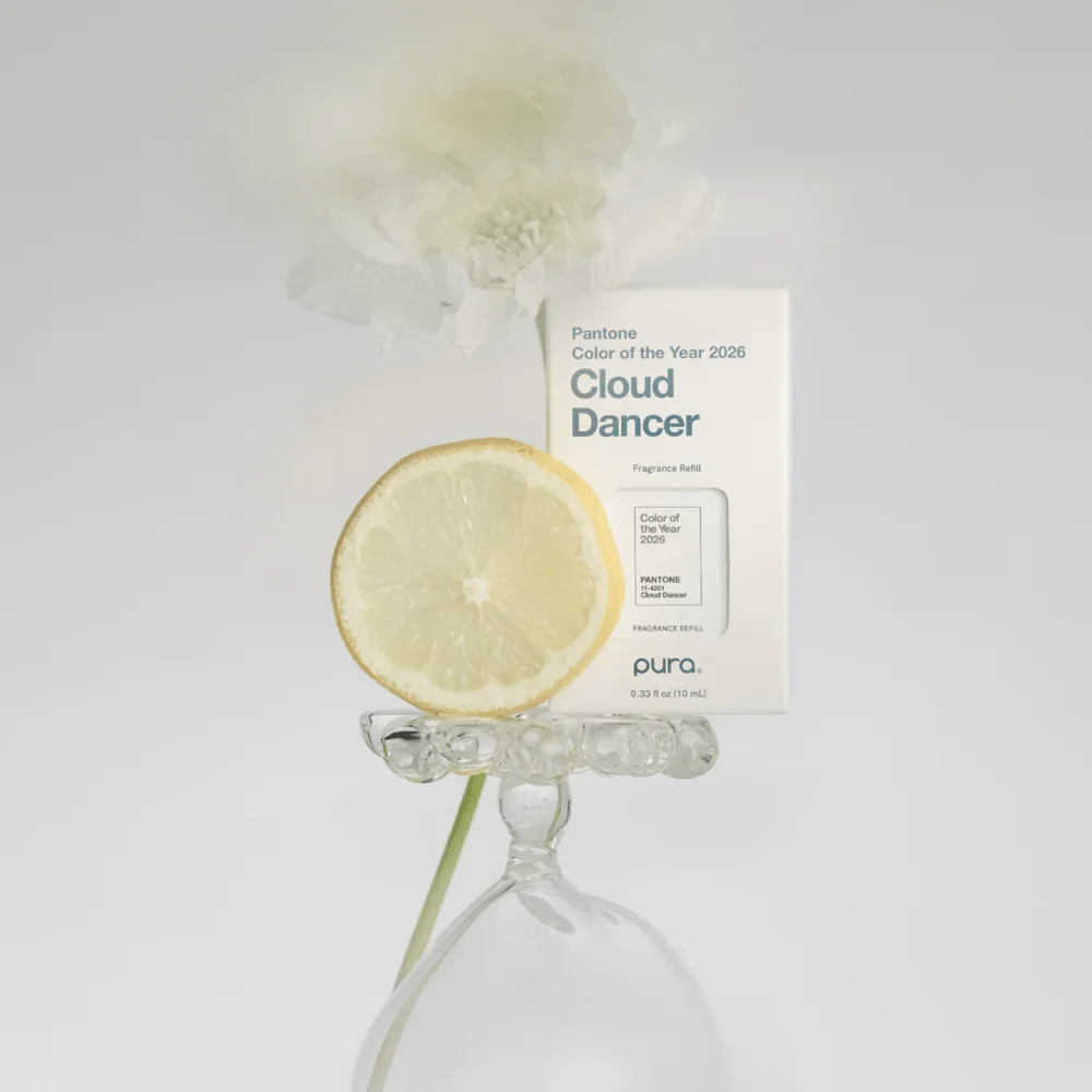 Pura. Производитель аромадиффузоров дал возможность не только увидеть цвет года, но и ощутить его аромат. Легкость Cloud Dancer передают воздушные ноты бергамота и фрезии, сияющая магнолия и солнечное цветение, а также успокаивающий шлейф из мускуса, амбры и сандалового дерева.