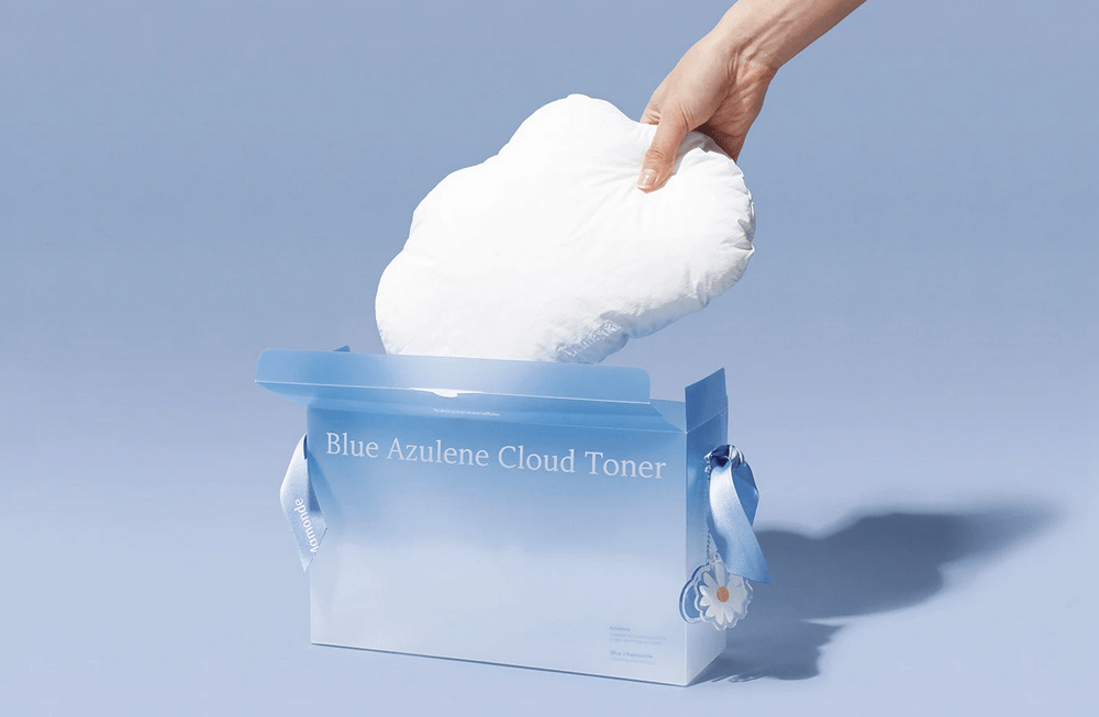 Белый цвет подойдет для оформления косметических средств, т.к. ассоциируется с чистотой. Пример — упаковка для тонера в виде облака.