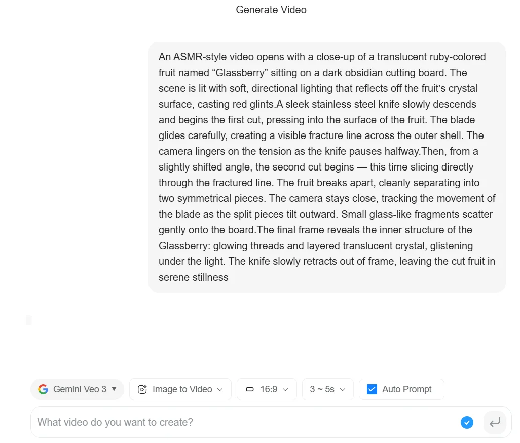 Результат работы любой нейросети зависит от промпта. Veo 3 понимает стили, ракурсы и даже жанры, но без четкого описания сцены может выдать не то, что вы задумали. Чтобы получить правдоподобный, «киношный» ролик, промпт нужно строить как мини-сцену.