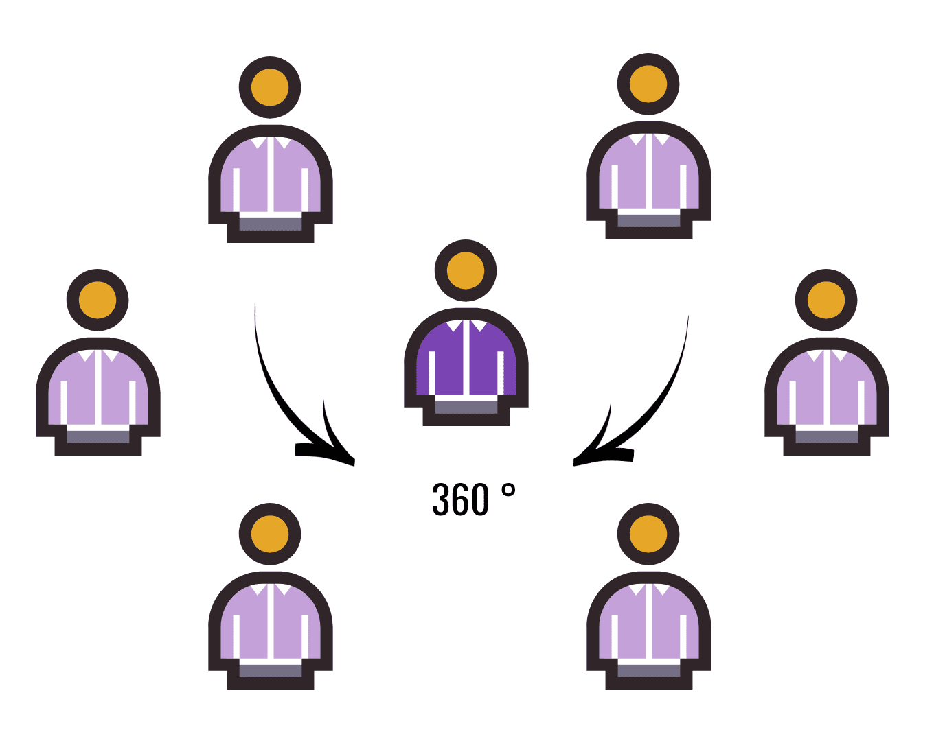 С помощью оценки 360 градусов бизнес может получить полную и объективную картину профессионального поведения каждого сотрудника. Название метода объясняет его суть — обратная связь собирается по кругу, со всех точек взаимодействия сотрудника в компании и даже за ее пределами. В процесс оценки вовлекаются непосредственный начальник, подчинённые, сотрудники из других отделов, а иногда и контрагенты — клиенты или бизнес-партнёры. Это помогает избежать субъективизма.