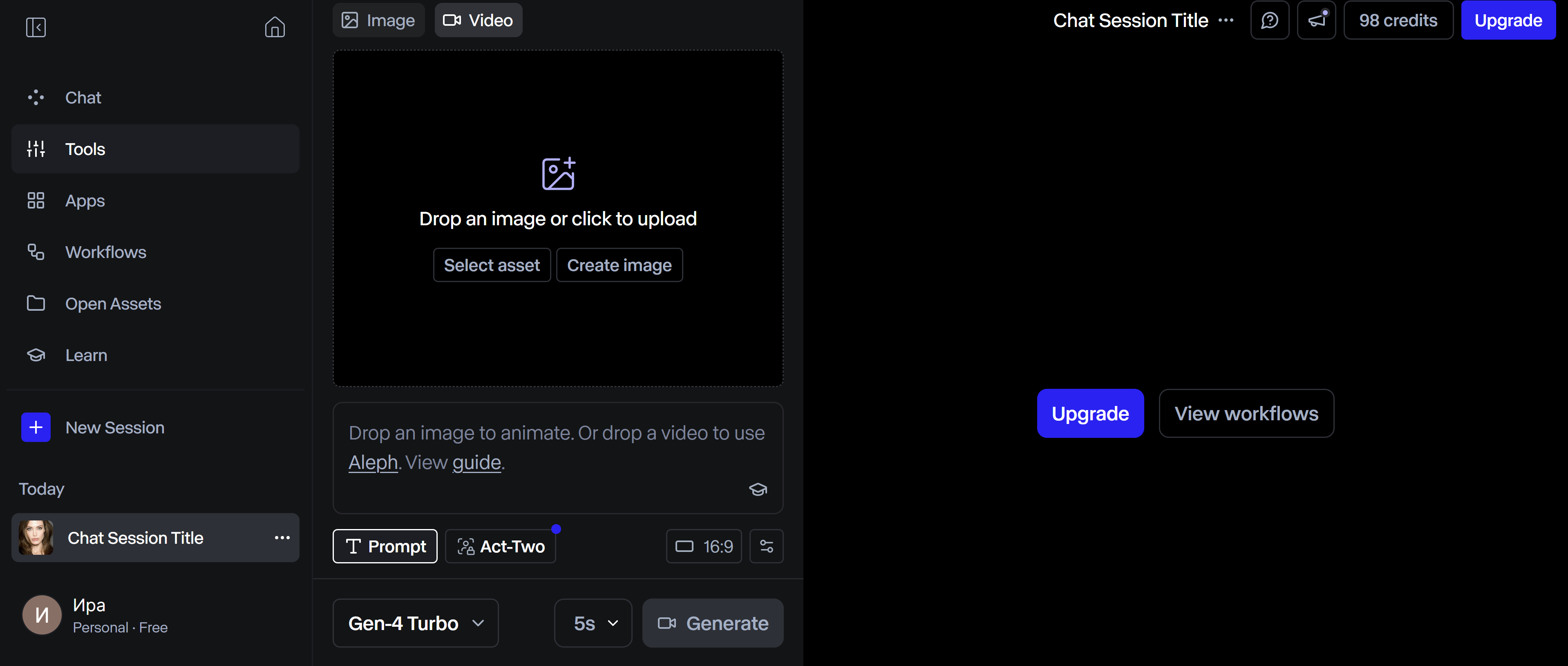 Стоимость: есть бесплатная версия, в которой дают 5 бесплатных кредитов — этого достаточно, чтобы сгенерировать одно видео из фото длиной в 5 секунд. Подписка стоит от $5 в месяц.