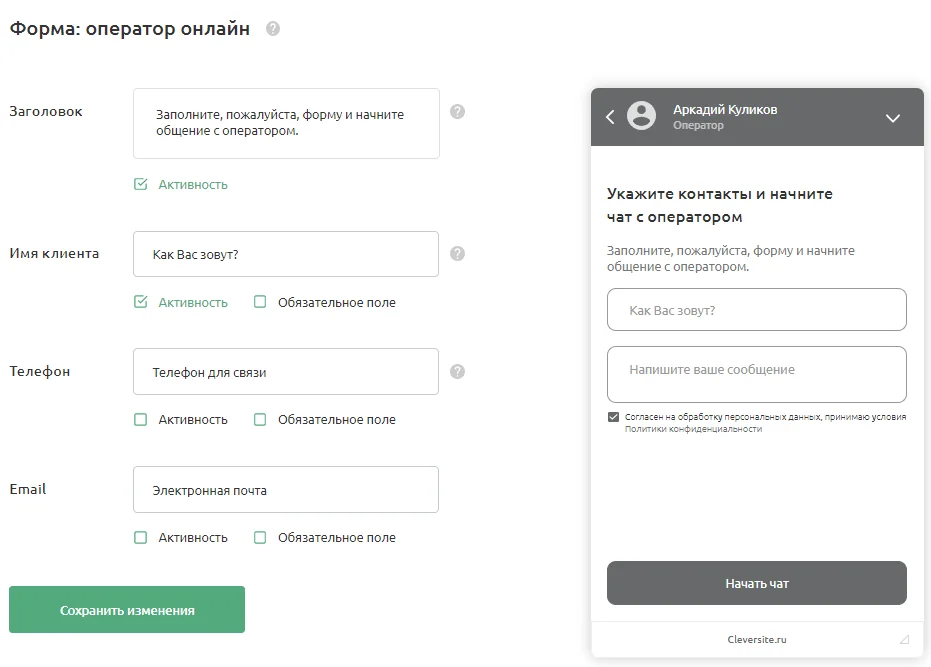 CleverSite — виджет онлайн-чата и обратного звонка. Похож на предыдущие сервисы.