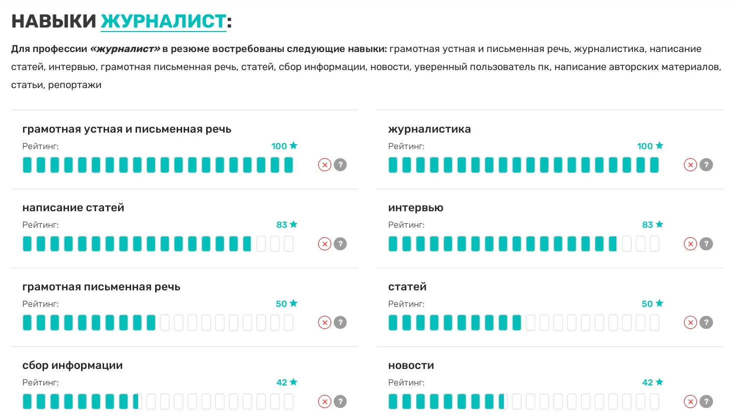 Преимущества. Сервис предлагает готовый набор фраз, который поможет описать навыки и специализацию. Также компания помогает искать работу и проводит полезные консультации.