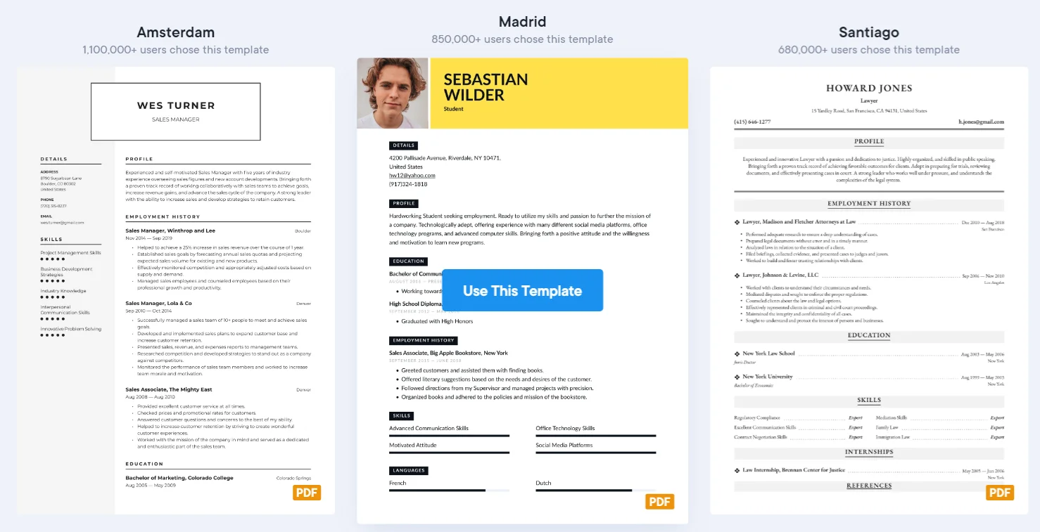 Resume — зарубежный конструктор резюме, в котором можно дополнительно создавать сопроводительные письма и искать работу. Для работы доступно 400 примеров резюме и 26 готовых шаблонов для разных специальностей.