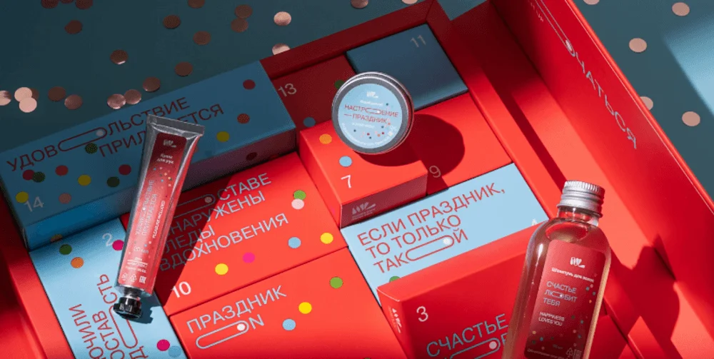 Например, в этом проекте для дизайна упаковки использовали красный и оранжевый, расположенные близко, вместе с голубым, который стоит в круге напротив них.