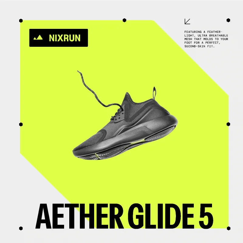 Например, в этом рекламном креативе для соцсетей кроссовок размещён по центру, а вокруг него — фон с ярким цветовым акцентом. Внимание сразу сосредотачивается на изображении товара, а затем переходит на дополнительную информацию: название модели, бренд и описание.