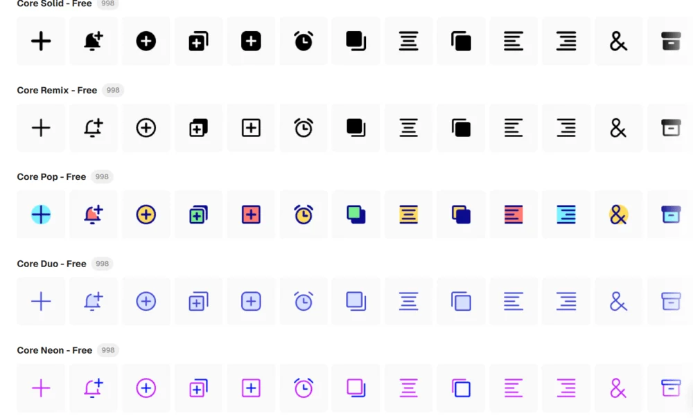 | Бесплатные паки с большим количеством иконок | Phosphor Icons, Tabler Icons, Iconmonstr, Microsoft Fluent System Icons, Remix Icon, Iconhub, Iconoir, Icons8 Glyph |