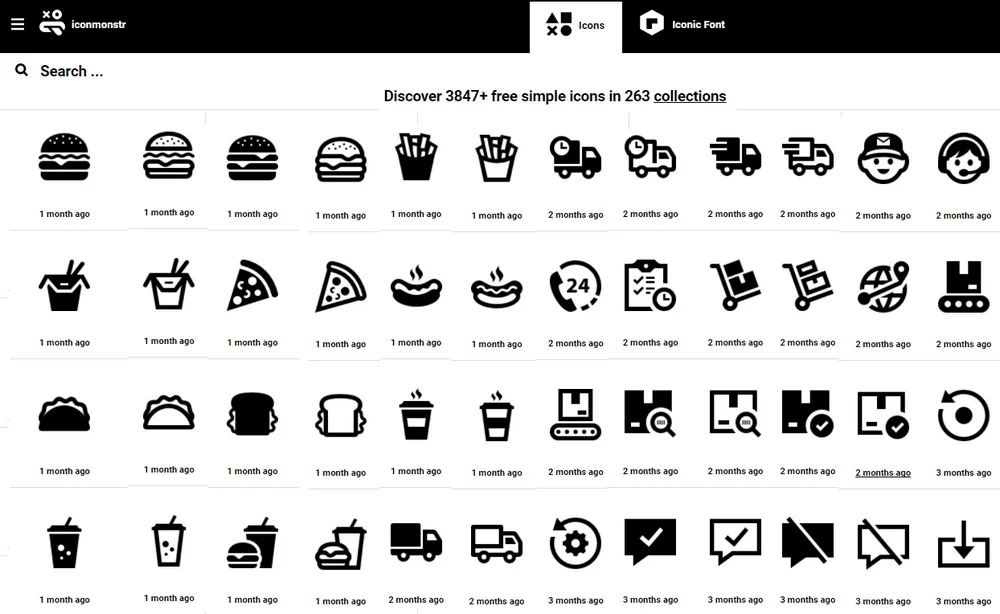Iconmonstr — это одна из старейших бесплатных библиотек иконок. В коллекции более 4000 иконок в минималистичном стиле: простые формы, чёткие контуры и высокая читаемость. В наборе есть иконки на разные темы: интерфейсные элементы, профессии, социальные сети, лайфстайл. У каждой иконки есть версия с заливкой и с контуром.