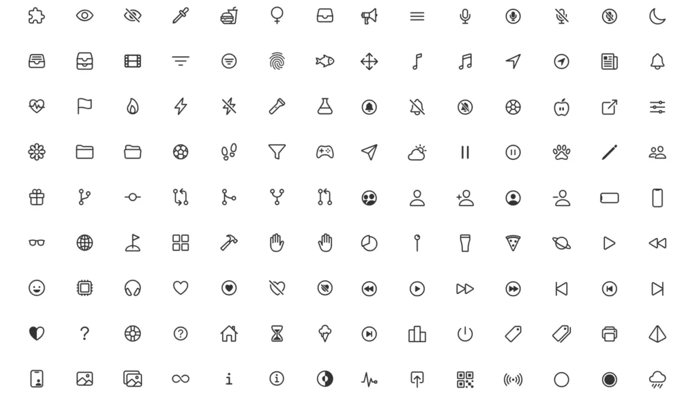 В коллекции более 3000 иконок c контурами или заливками. Пак охватывает самые разные категории — от базовых UI-элементов до тематических значков. Для каждой иконки можно выбрать толщину линий.