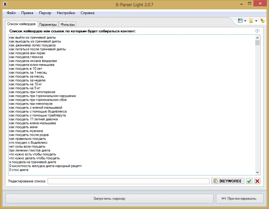 X-Parser Light. Собирает тематический контент по списку ключевых слов или ссылок. Кроме текстовых данных парсит видео и изображения. Поддерживает любые поисковые системы и практически любой язык. Работает в формате десктопного приложения. Стоимость — 4100 ₽ единоразово (периодически бывают скидки, можно купить за 2870 ₽).