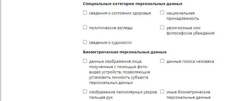 – Специальные ― данные о национальности и расе, политических взглядах, религиозных или философских убеждениях, состоянии здоровья, интимной жизни.