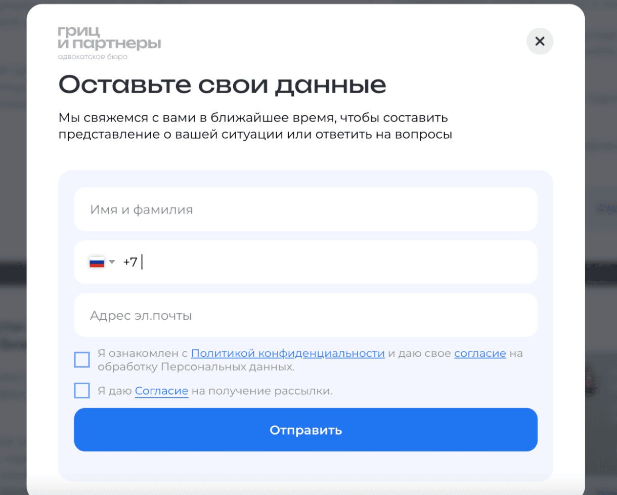 Например, ранее на сайте достаточно было повесить форму «Введите имя и email» и маленькую ссылку «Нажимая кнопку, вы соглашаетесь с политикой конфиденциальности».
