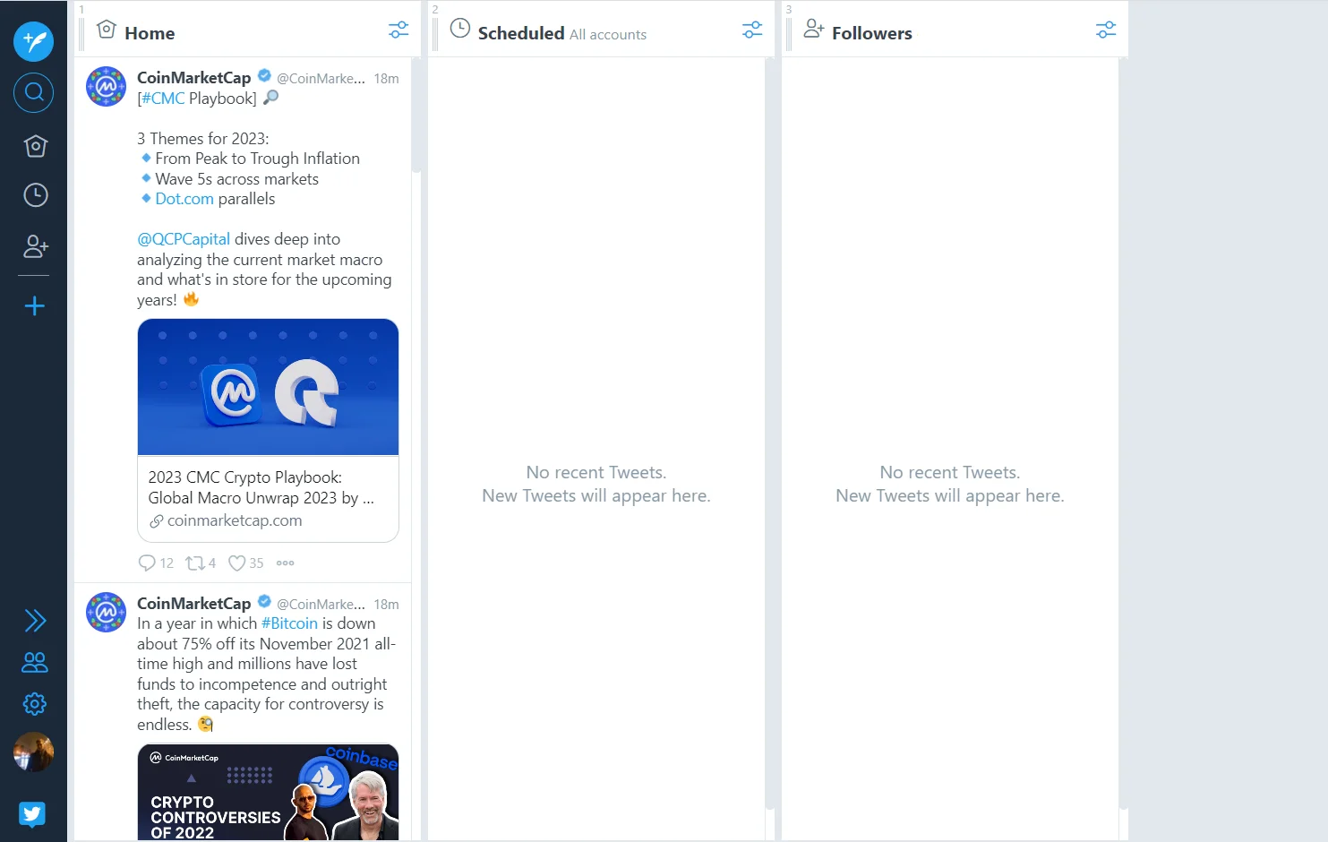 TweetDeck — официальное приложение, которое позволяет вывести несколько лент на один экран и следить за их обновлением в прямом эфире. К доске можно добавлять 5, 10 и даже 20 списков и следить за всеми одновременно. Твиты в списках выводятся только в хронологическом порядке.