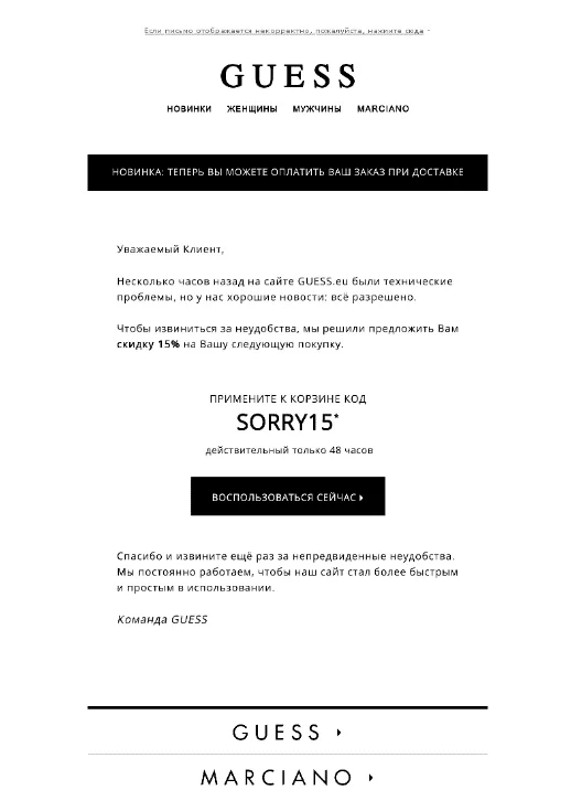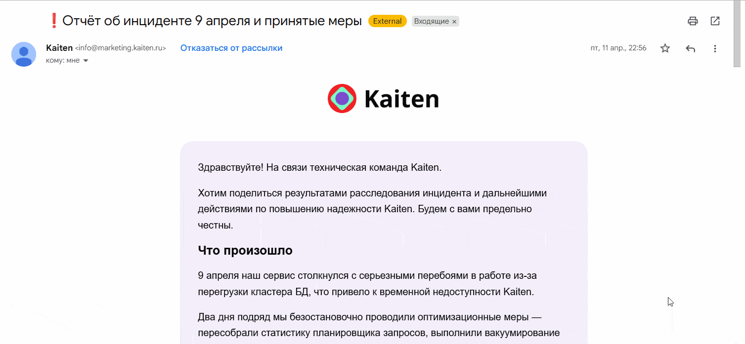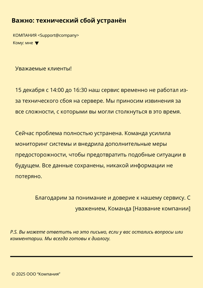 Прозрачность в заголовке сразу формирует правильные ожидания и показывает, что компания не пытается скрыть проблему.