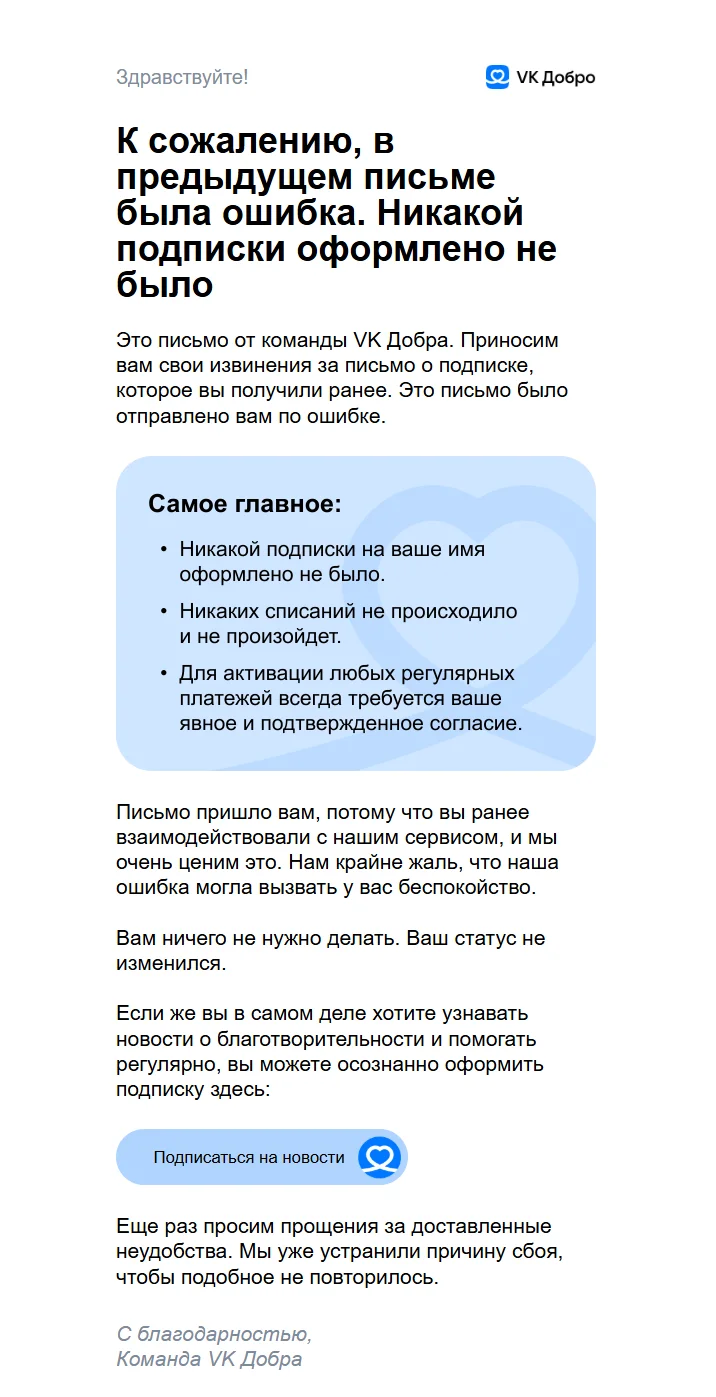 - «Важно: исправляем ошибку и благодарим за ваше терпение»