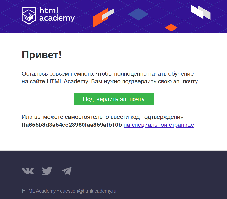 Проверяйте почту — письмо придет в течение 5 минут (обычно мгновенно)