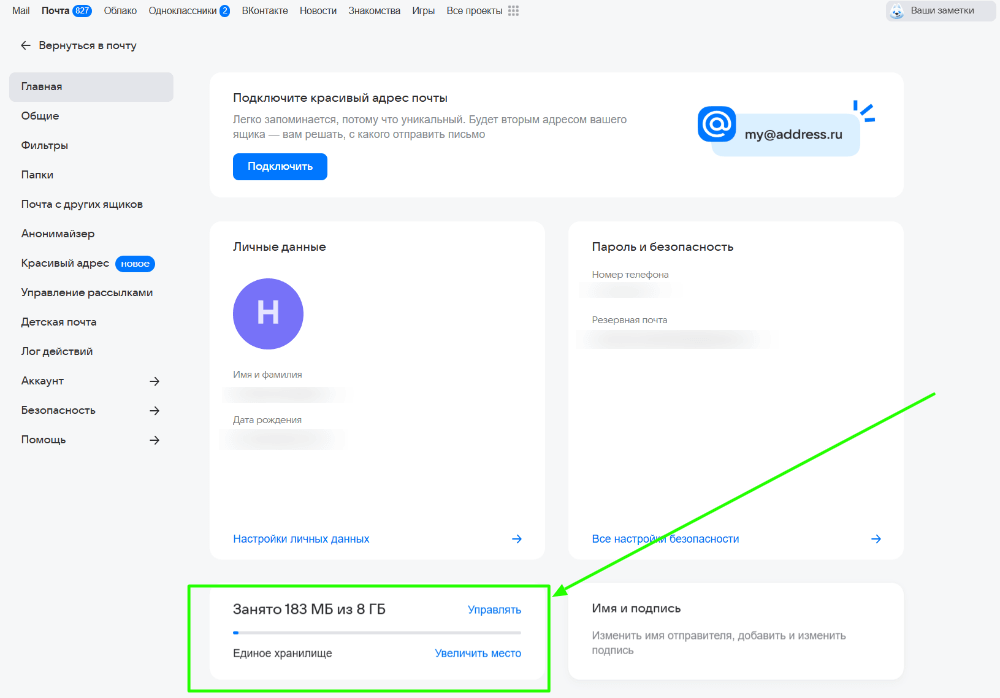 Освободите место. Удалите ненужные или старые письма, особенно те, которые имеют большие вложения (фотографии, видео, документы).