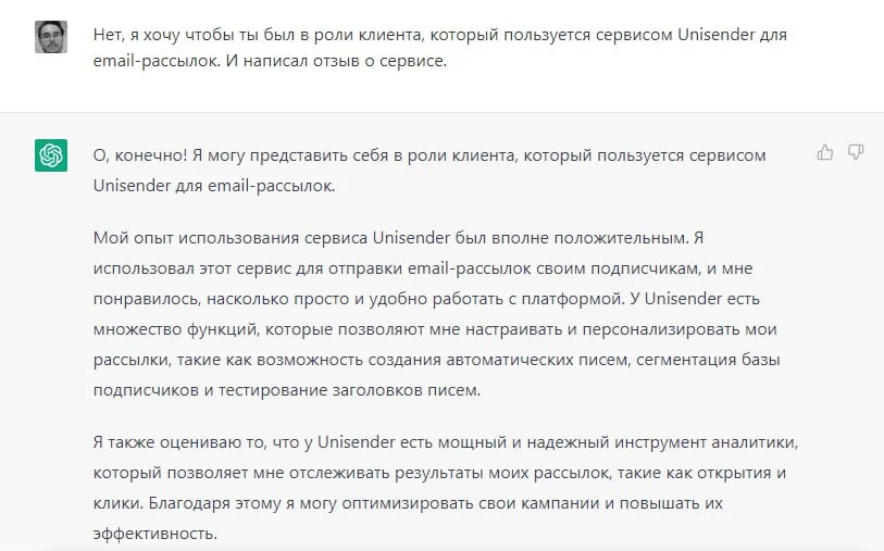 P.S. Пока писала эту колонку, мне пришла в голову мысль попросить ChatGPT написать какой-нибудь отзыв. Стало интересно, насколько хорошо нейросеть справится с этой задачей. Мы сделали запрос на парочку отзывов и вот что получили. И, кажется, что пока никакая нейросеть не заменит искреннего человеческого отзыва, которому хочется доверять.