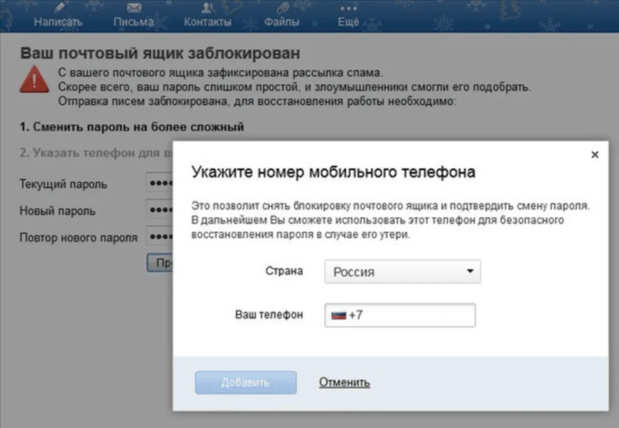 Когда сервис заподозрит подозрительную активность, то он может потребовать подтвердить номер телефона для усиления безопасности. Если пользователь этого не сделает, доступ к аккаунту будет заморожен, а впоследствии ящик удалят. При потере доступа к номеру можно воспользоваться резервной почтой.