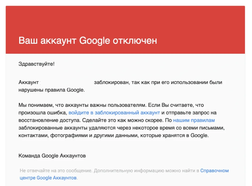 Хорошая новость в том, что сначала у сервиса возникнет подозрение, что вас взломали, а не в том, что вы — злостный спамер. Так что вам скорее всего дадут возможность восстановить доступ. Но блокировка происходит в любом случае, даже если аккаунт был взломан и спам рассылают без ведома владельца. По правилам любого почтового сервиса пользователь сам отвечает за сохранность авторизационных данных.