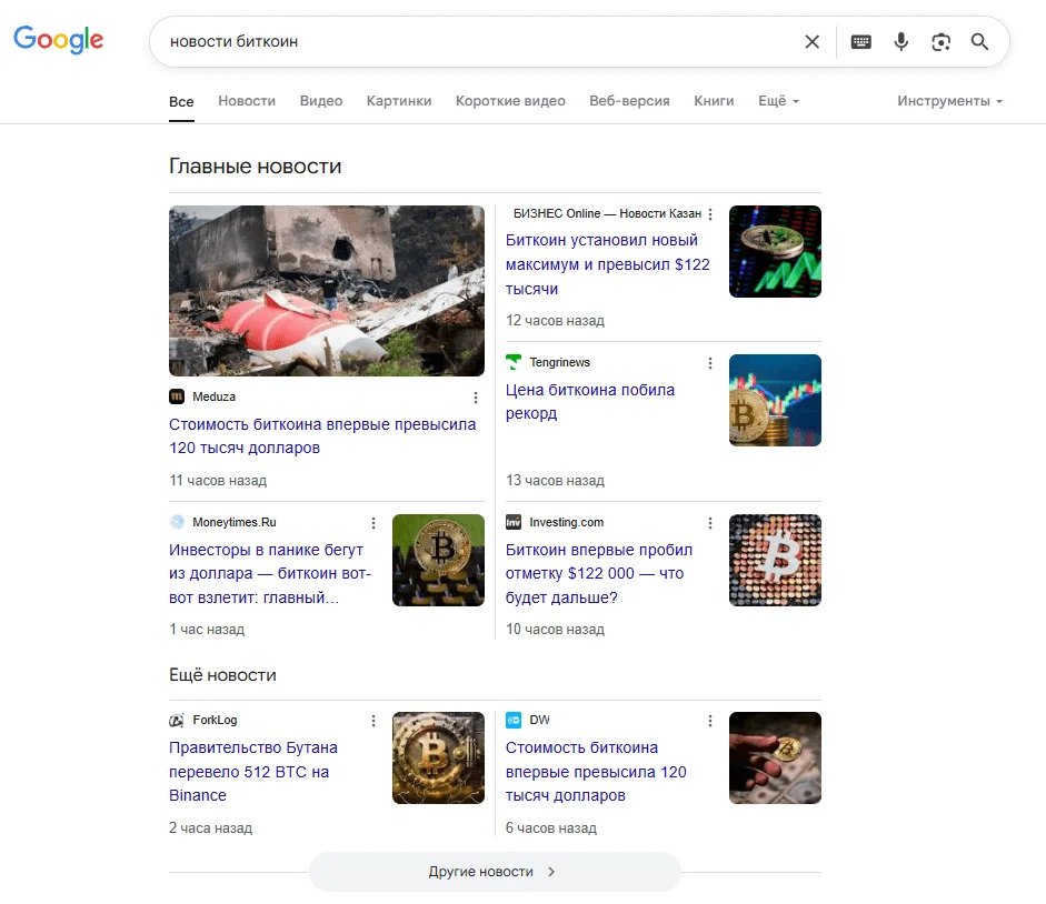 Пример: новости биткоин