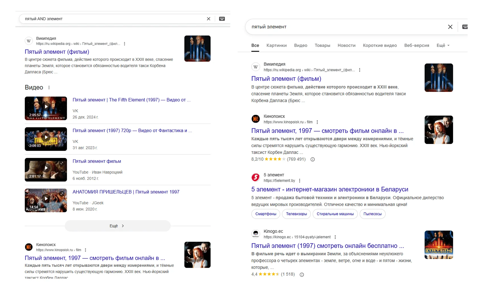 Пример: (эпоха OR фильм) ренессанс