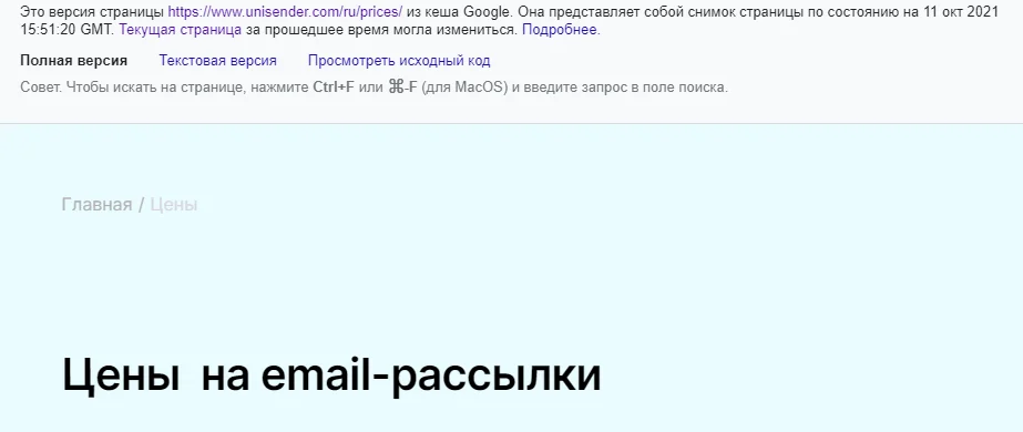 Пример: cache:unisender.com/ru/prices/