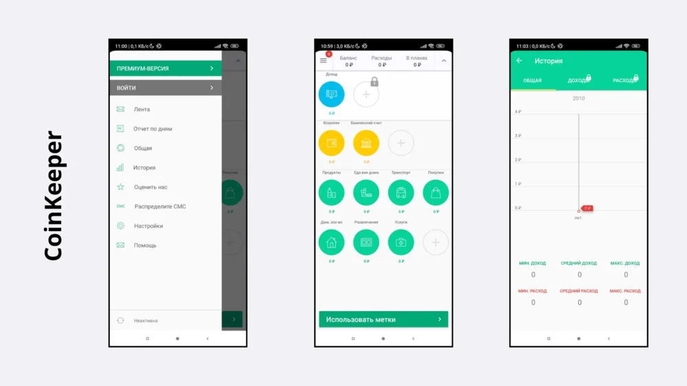 Особенность приложения в том, что оно автоматически распознаёт SMS от любых банков. Это позволяет быстро заносить доходы и расходы. Кроме того, CoinKeeper учитывает кредиты, долги и займы. Приложение напомнит о дате возврата платежа.