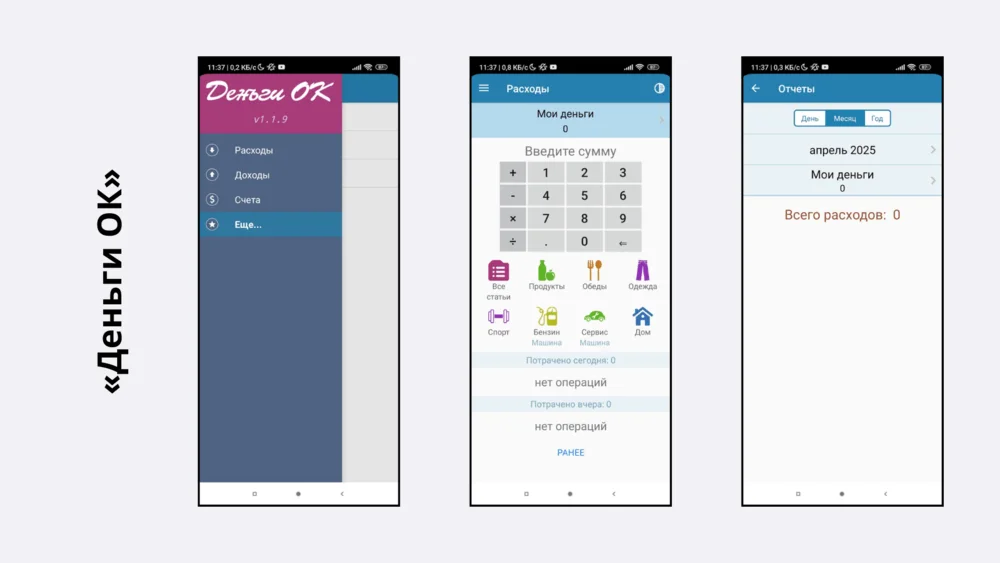 В приложении «Деньги ОК» ввод нового платежа занимает несколько секунд. Но простота использования сочетается с широкими возможностями. Возможности сервиса позволяют отслеживать все доходы и расходы.