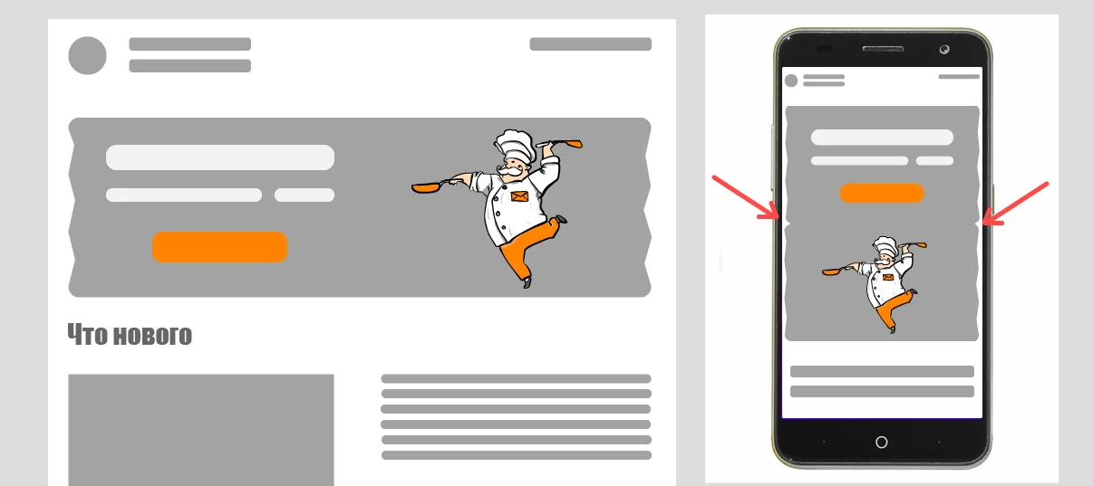 Кроме масштабирования можно использовать отсечение — убирать ненужные области по краям от основной картинки. Но с отсечением нужно работать осторожно, чтобы при адаптации письма важная информация не пропала с картинки.