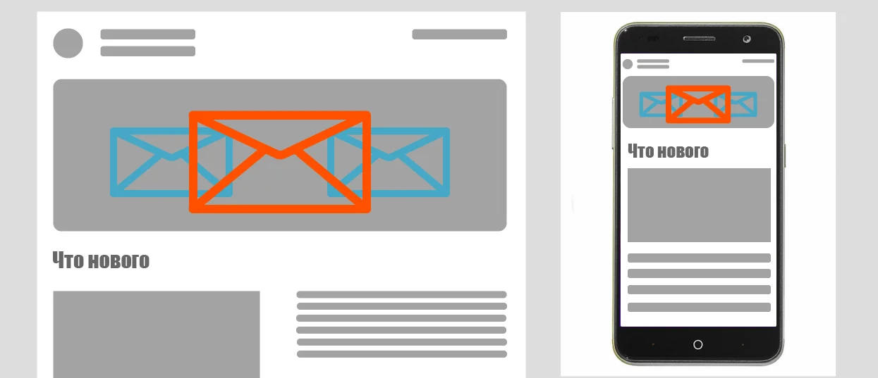 При создании макета лучше использовать модульную сетку в 2–4 столбца. Такая структура не перегружает страницу количеством контента и подходит для адаптации письма под мобильные устройства.