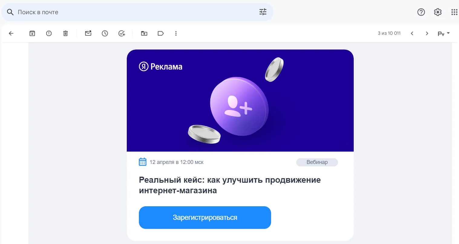 А еще учитывайте особенности отображения писем в почтовых сервисах. Например, в Яндексе есть колонка справа, из-за которой фактическая ширина письма уменьшается и иногда появляется горизонтальная прокрутка. В Gmail такой проблемы нет.