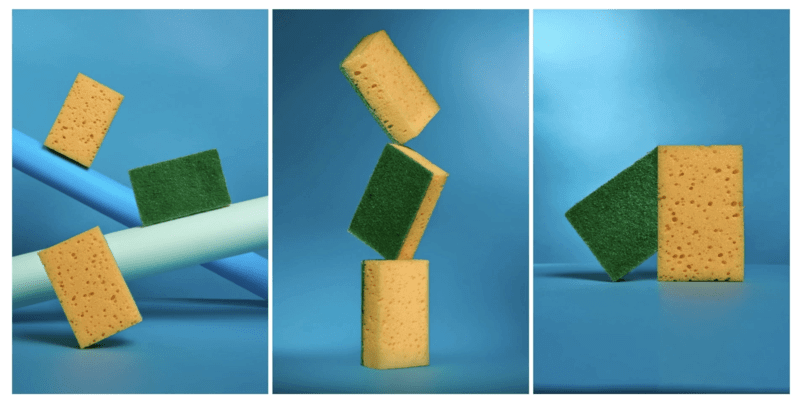 Если поиграть с расположением предметов в кадре, даже простая съемка губок для посуды может выглядеть необычно.