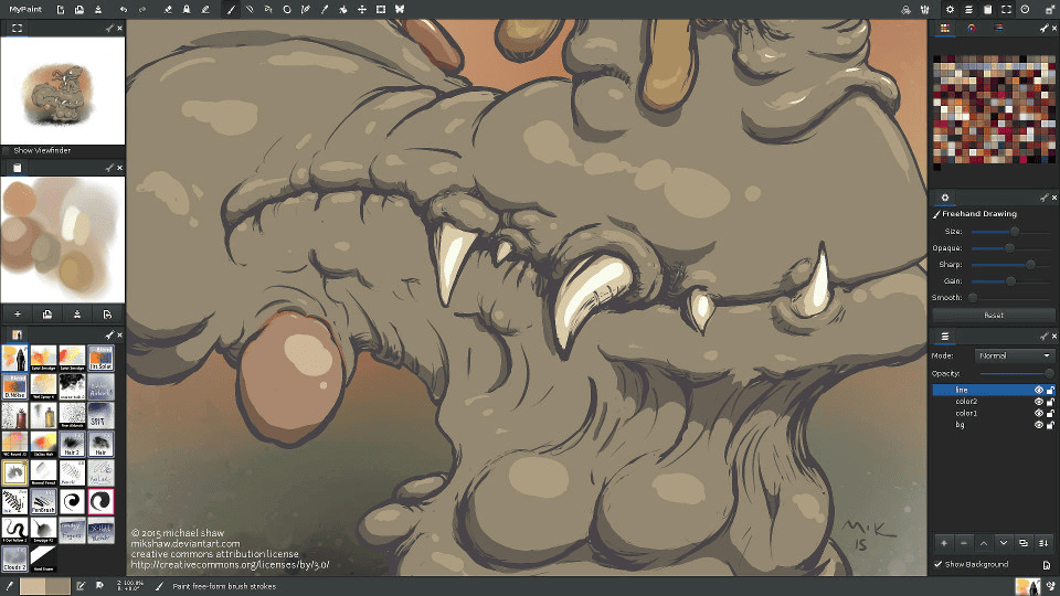 Растровый графический редактор, который по функционалу не уступает платным приложениям. Его разрабатывали художники для художников, а именно для иллюстраторов, комиксистов и концепт-художников.