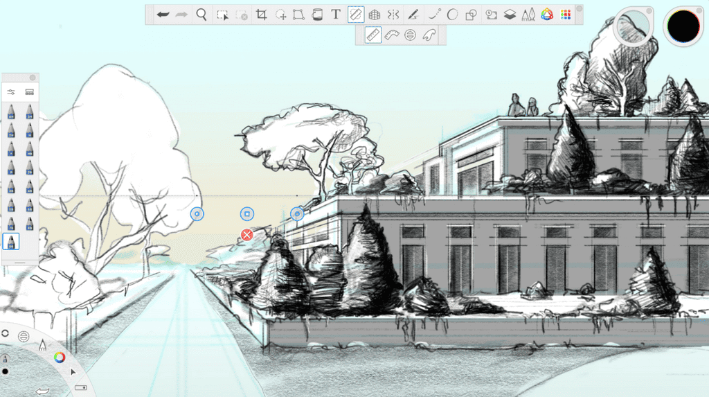 Интерфейс минималистичный: панели можно убирать, чтобы остался только холст и кисть. В Sketchbook ничего не будет отвлекать, если нужно сделать моментальную зарисовку, визуальную заметку или закончить сложный рисунок.