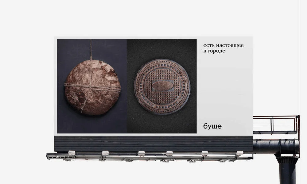 В рекламе пекарни «Буше» обыгрывают сходство выпечки с объектами городской среды Петербурга и явлениями природы. Постеры признаны получили награду Art Directors Club of Russia в категории «Print/Outdoor».ъ