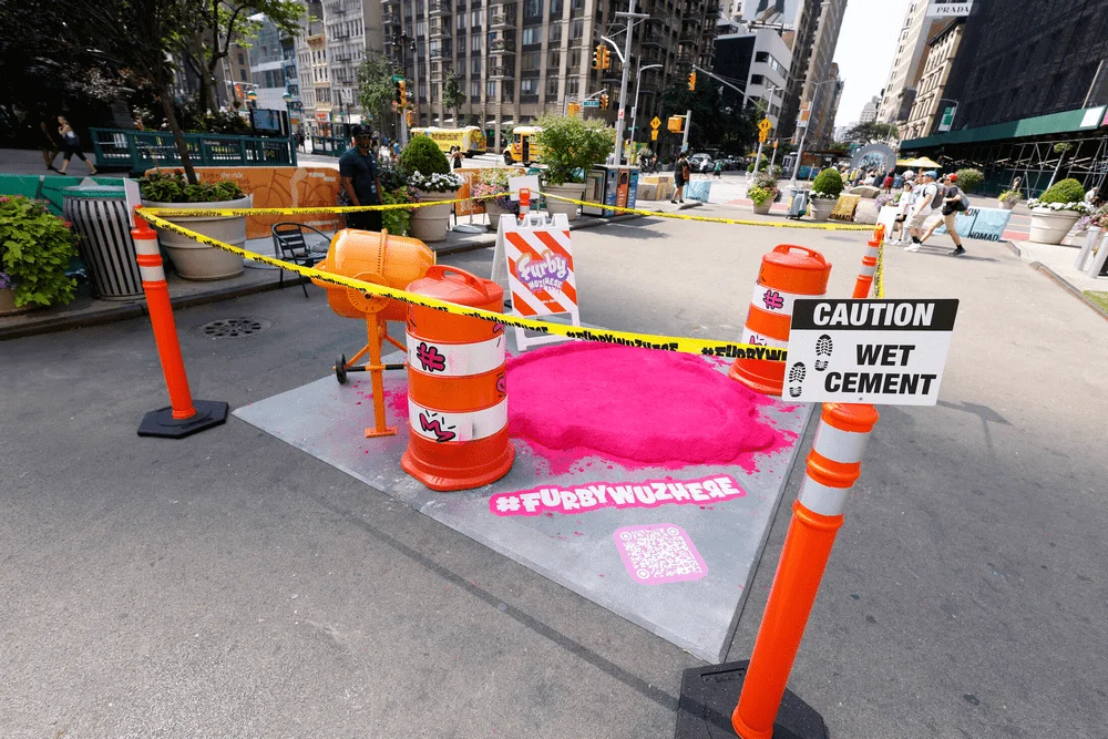 Возможно, вы помните игрушки Furby («Ферби») — это небольшие пушистые совы, которые умеют говорить или прыгать. В Нью-Йорке сделали инсталляцию, посвященную возвращению «Ферби»: по задумке, сова оставляет в городе следы, которые ограждают лентой. Для привлечения внимания к арт-объекту была запущена рекламная кампания от блогеров в TikTok.