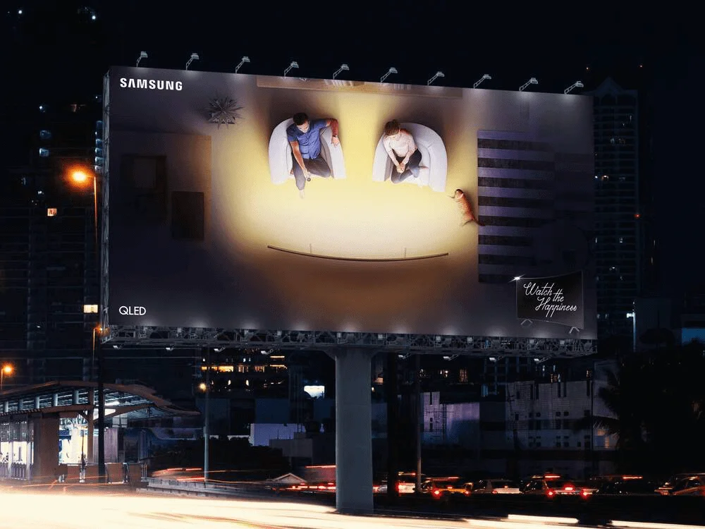 В турецкой рекламе Samsung фотография людей, смотрящих телевизор, складывается в смайлик. Сопровождается слоганом “Watch the Happiness” — «Смотрите счастье».