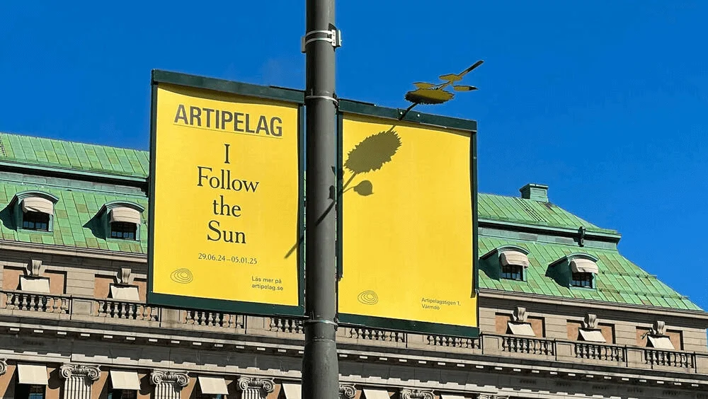 Это рекламная кампания галереи Artipelag в Стокгольме. Она приурочена к выставке «Я следую за солнцем», которая посвящена роли подсолнуха в искусстве. Над желтым полотном размещен металлический цветок, который создает тень. Жесткий металл позволяет достичь максимально четких контуров. Положение тени меняется в течение дня — так же, как живой подсолнух поворачивается за солнцем.