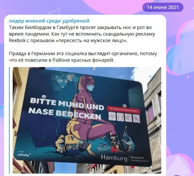 К этой рекламе до сих пор возвращаются Telegram-каналы, СМИ и бренды, напоминая про неудачную попытку разорвать шаблон. Например, спустя 2 года после кампании крупный паблик сравнивает Reebok с кварталом красных фонарей.