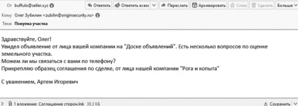Согласно общепринятым правилам деловой переписки, отправка вложений требует устного или письменного уведомления. В большинстве случаев никто из коллег или официальных организаций не станет присылать вам важные документы без запроса или предварительного обсуждения. Неожиданное вложение, особенно от имени руководителя, почти всегда является тревожным сигналом.