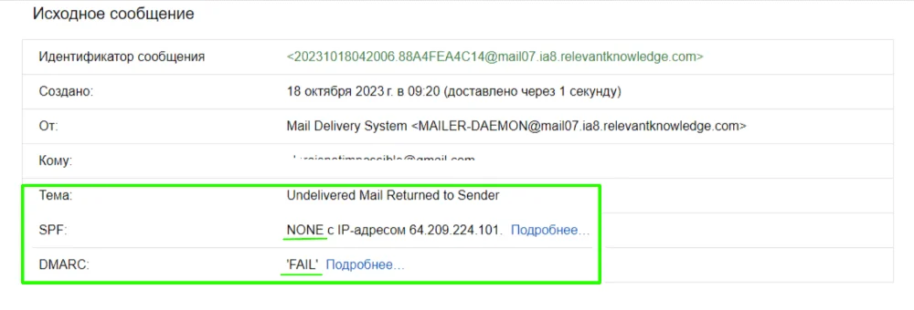 Если хотя бы одна из этих записей показывает fail или softfail (подозрение), это является серьёзным основанием считать письмо поддельным.